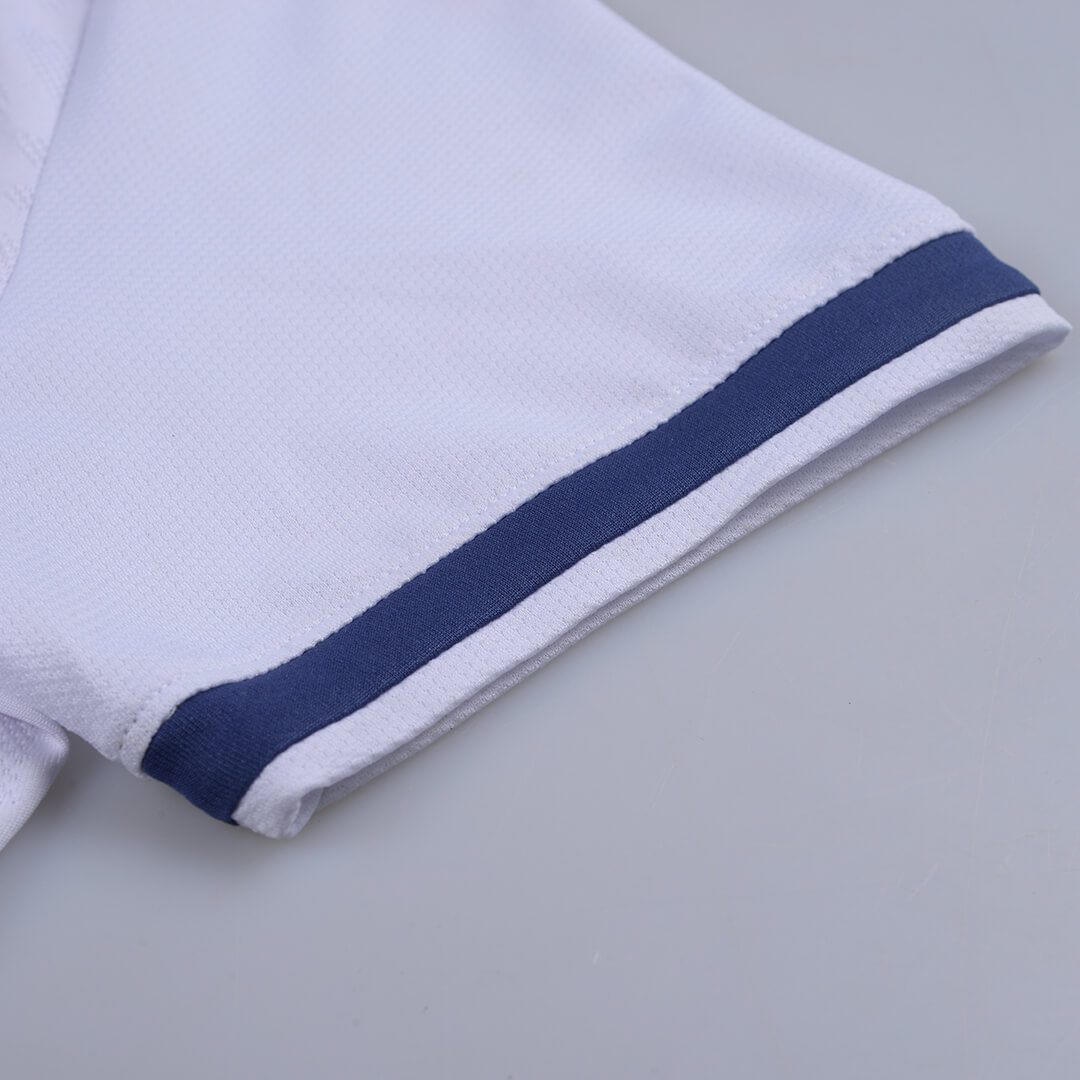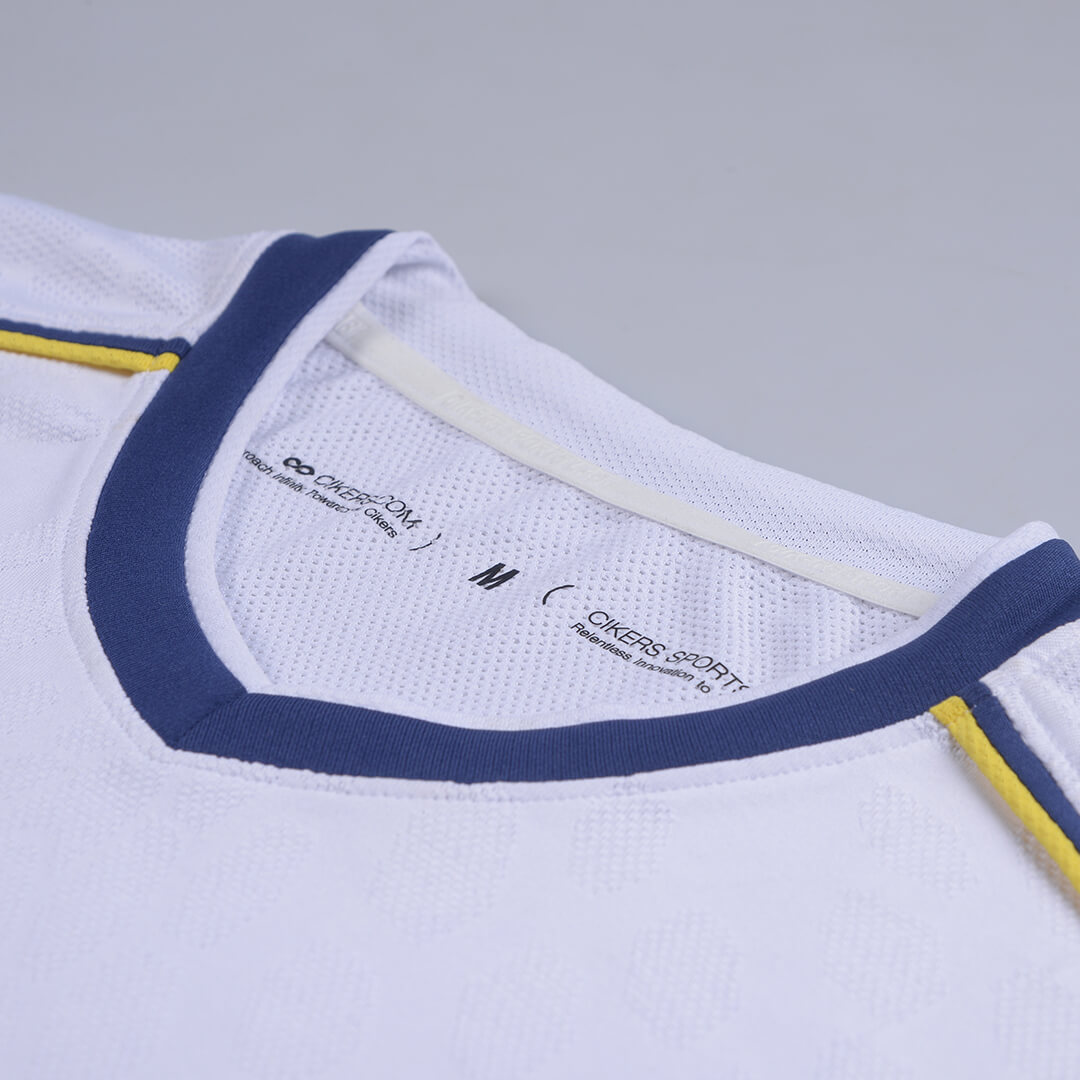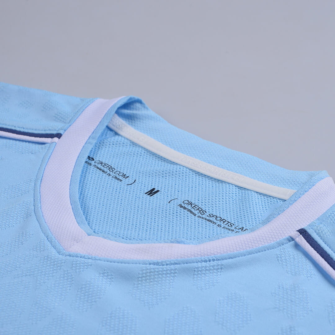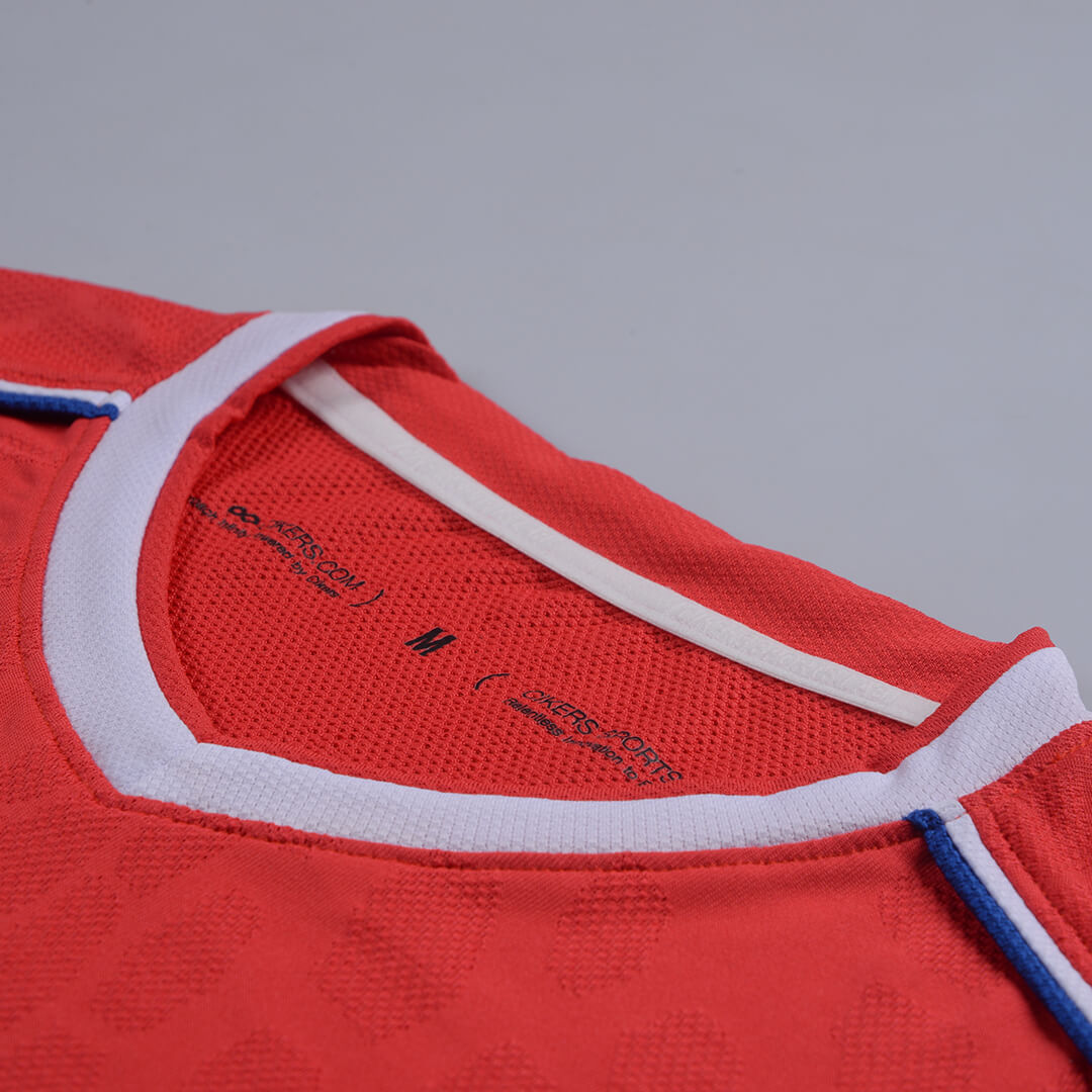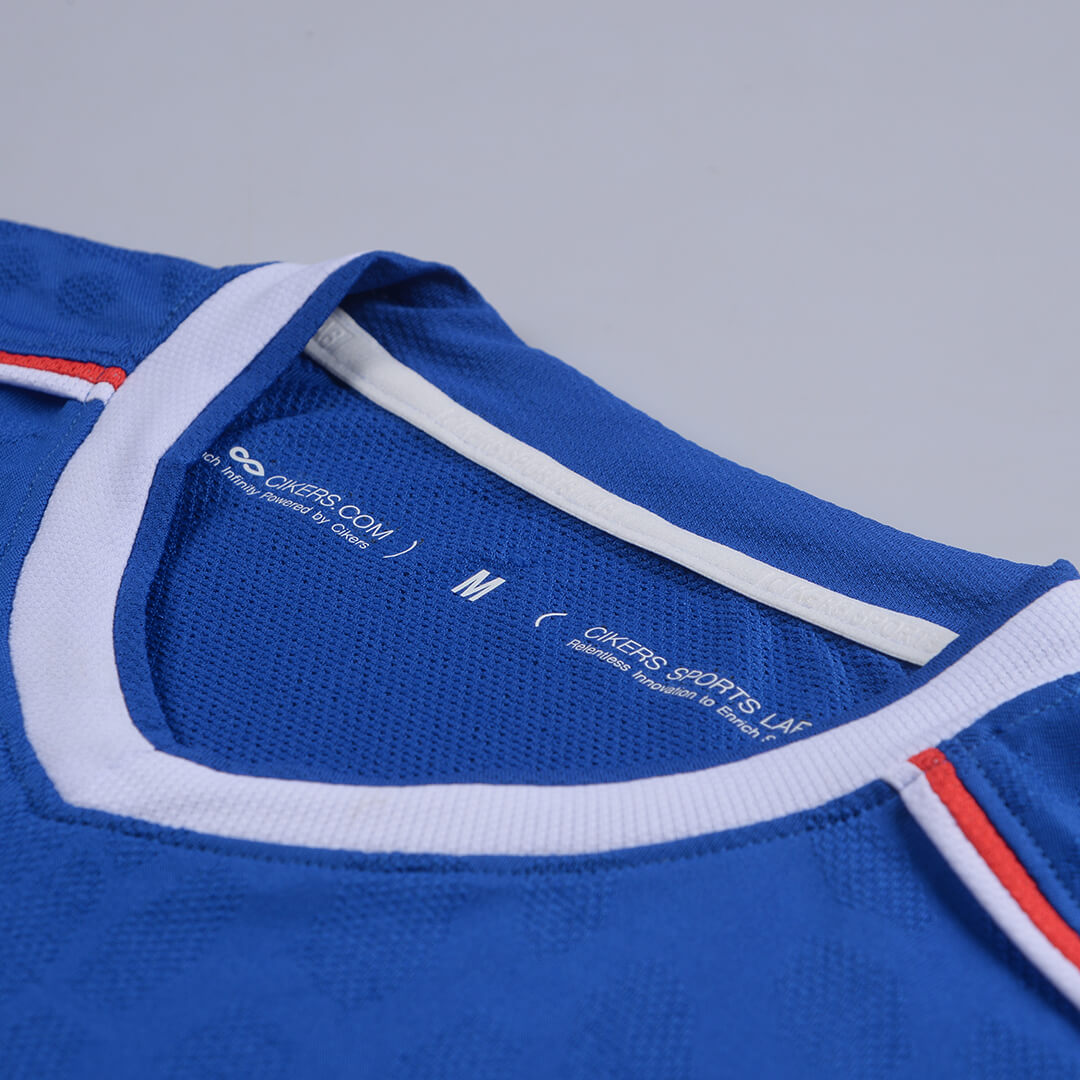 一代龙脉战袍,以“脉”字立意,完美融合足球六边形的几何元素与龙鳞意象,将血脉相连、根源、激情澎湃等寓意赋予球衣,具体以染色深浅之别,呈现在球衣腰腹与后背等处。全新迭代龙脉,延续龙脉精神,不施第二色彩,仅以提花工艺,成就凹凸疏密质感,以光影差异造就龙脉蜿蜒之势,简约大气。