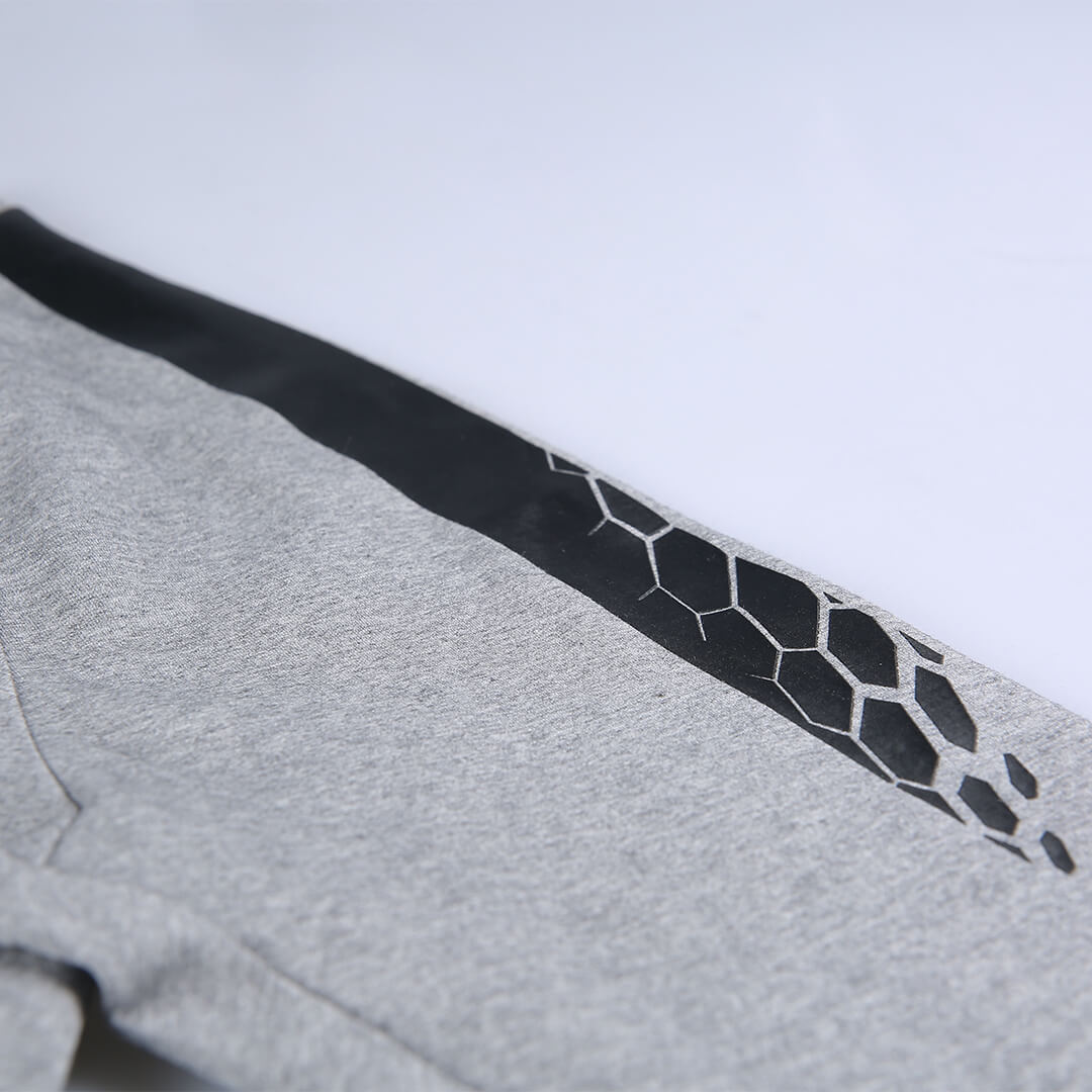 通过压胶工艺,用专门针对风雨气候设计的防水透气且极薄的胶膜,将两种不同类型的面料结合在一起。外层梭织面料与内层透气胶膜的组合,让衣服更加具有质感,折叠无明显痕迹,版型挺拔,更加凸显人体的轮廓,是秋冬训练场上独特的一道风景。